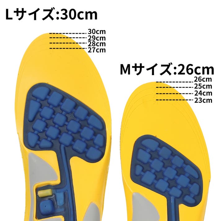 ● サイズの調整方法 ご自身の靴にもともと入っているインソールを取り出し、本製品と重ねてつま先部分をハサミでカットしてください。つま先には1cm刻みのカットラインが入っており、簡単に調整いただけます。