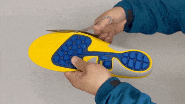 カット: お手持ちのインソールに合わせ、つま先部分をハサミでカットします。