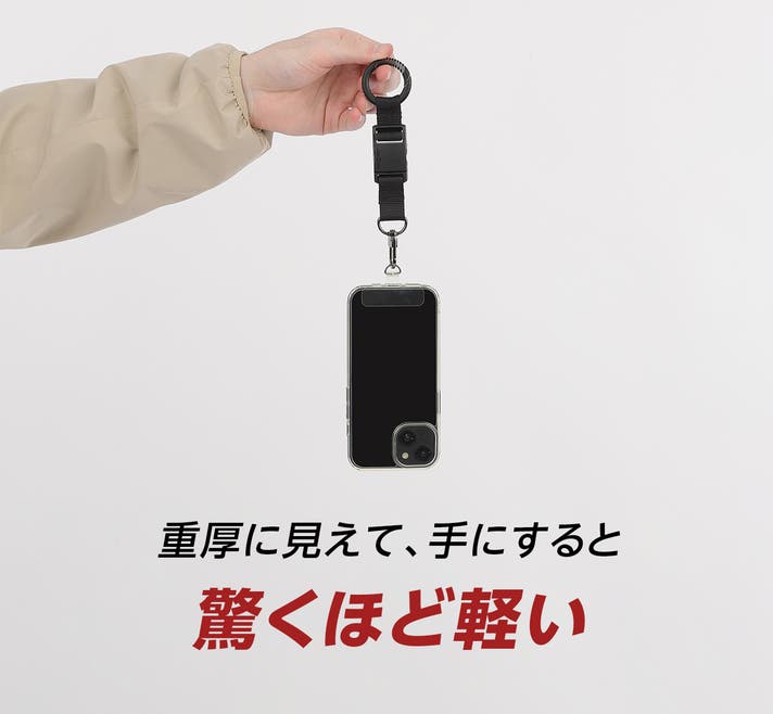スマホと一緒に持てるループ構造が生まれました。