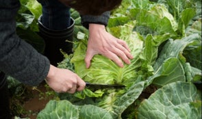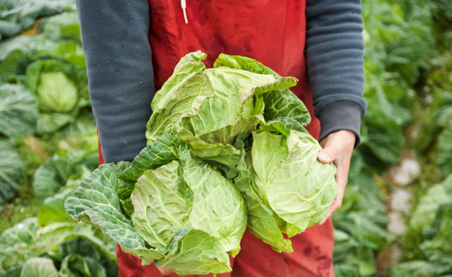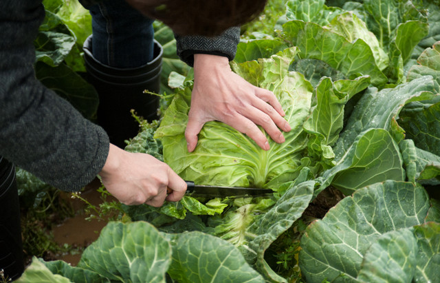 広大に広がるキャベツ畑に足を運び、実際に収穫体験をスタッフで行いました。