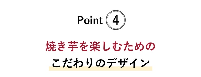 「焼き芋クッカー Sweet Memorie」のデザインは、さつま芋をバランスよく入れることができる楕円形を採用しています。