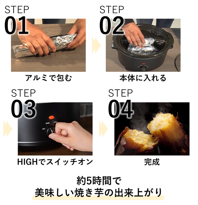 - 焼き芋だけじゃない!カレーライスや煮物など低温調理で多彩な調理が可能!手間なく料理を楽しめる!