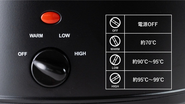 温度:HIGH約95℃~99℃、LOW約90℃~95℃、WARM約70℃