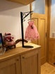 ハンガーにミニチュアドレスを掛け、吊るし台(スタンド)に吊るし平な場所に飾る