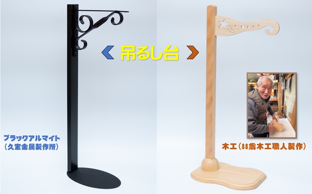 ★吊るし台は当店オリジナルブラックアルマイト(久宝金属製作所)、木工(88歳木 工職人製作)の2種類があります。