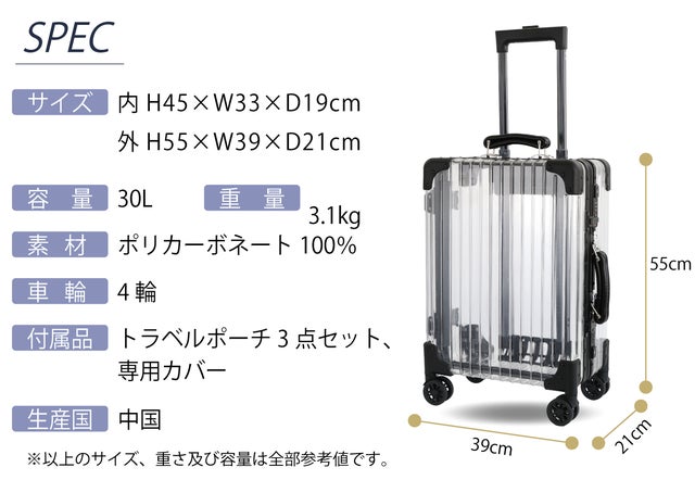【超早割25%OFF】スケルトンスーツケースセット+KOBALTトラベルポーチ