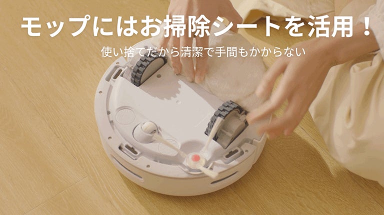 K10+は市販の使い捨ての床拭きシートを利用可能!モップ洗いの手間は一切かかりません。これでモップに関するお悩みや、生乾きの嫌な臭いも一掃!