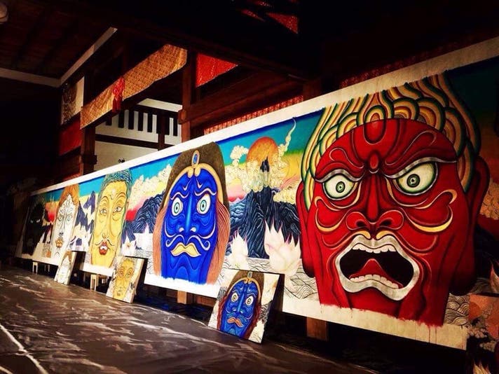 以後10年近くに渡り巨大作品を生み出しては京都や東京の寺院や神社、ホテルに設置しています。