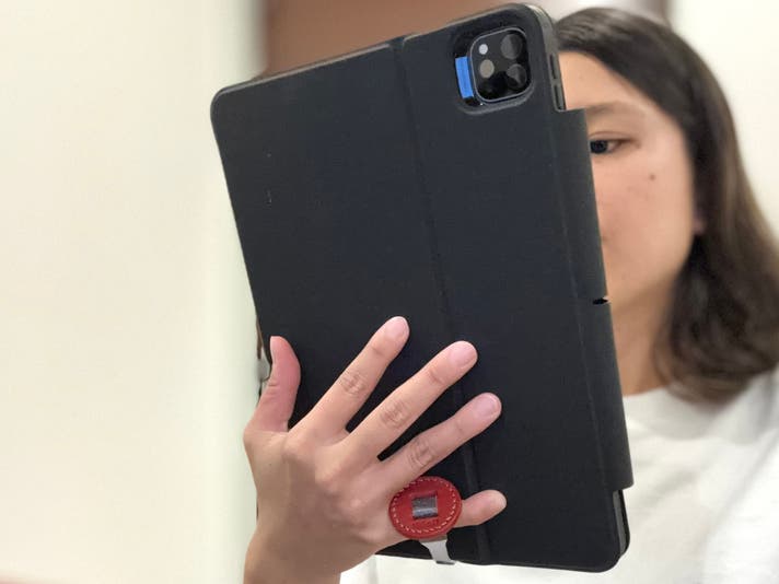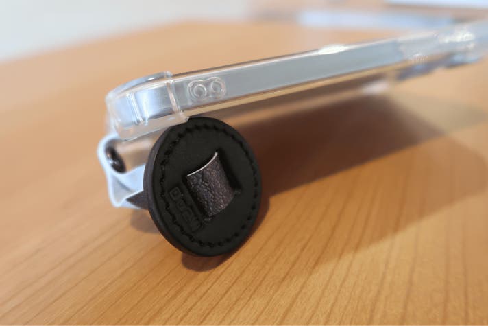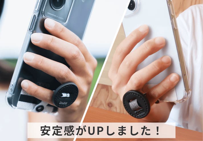 ボタンの大きさと革の仕様を改良したことに伴い、指の間に挟んだ際のスマホを支える安定感がさらにUPしました!