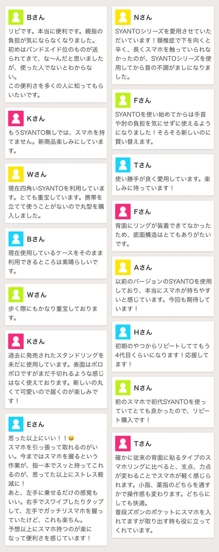 私たちは、動作サポート商品として、エルゴノミクスリング「SYANTO」 を製造するためのプロジェクトを誠心誠意進めさせていただきます。 ※ 商品の仕様内容に製造工程で変更する場合があった場合は、活動レポートから随時報告させていただきます。 ※ 商品の製造や発送の遅延が生じる場合は活動レポートから随時報告させていただきます。 最後に、SYANTOを手に取って皆様に喜んでもらえるよう、社員一同心を込めて提供させていただきますので、応援よろしくお願いします。 キャンセルポリシー 本文中に記載させていただいたスケジュールは、あくまでプロジェクト公開時点の予定です。応援購入の性質上、配送遅延のおそれがございます。 原則として、配送遅延に伴う応援購入のキャンセルはできませんが、リターン配送予定月から3ヶ月を超えた場合には、希望者に限りキャンセルにて対応させていただきます。 ※初期不具合がある場合は不良状況を写真を添えてご一報ください。商品到着後7日以内に、未使用の状態(ただし不具合確認のための開封は除く)でご連絡いただけた際には、確認次第ご対応致します。
