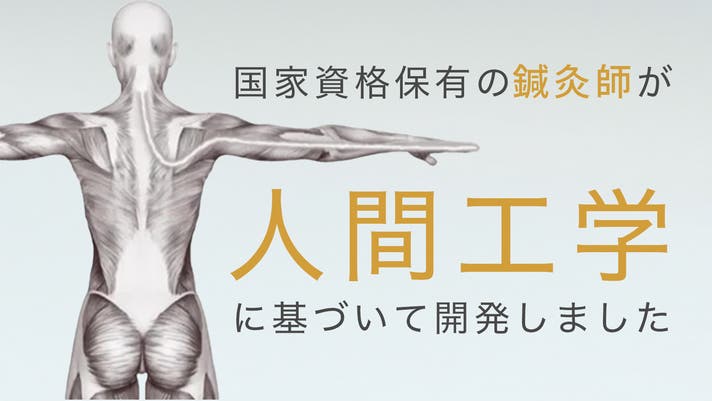 - 鍼灸師が開発した人間工学構造で手指・首の負担を軽減。姿勢が整う。