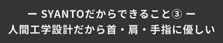 A1. 身体の構造上、小指と背中が繋がっているからです。そのため、小指を効果的に使うことで背中の筋肉が使われるようになり、姿勢が起きます。SYANTOを使用すると、手の緊張が和らぎ同様の効果が期待できます。
