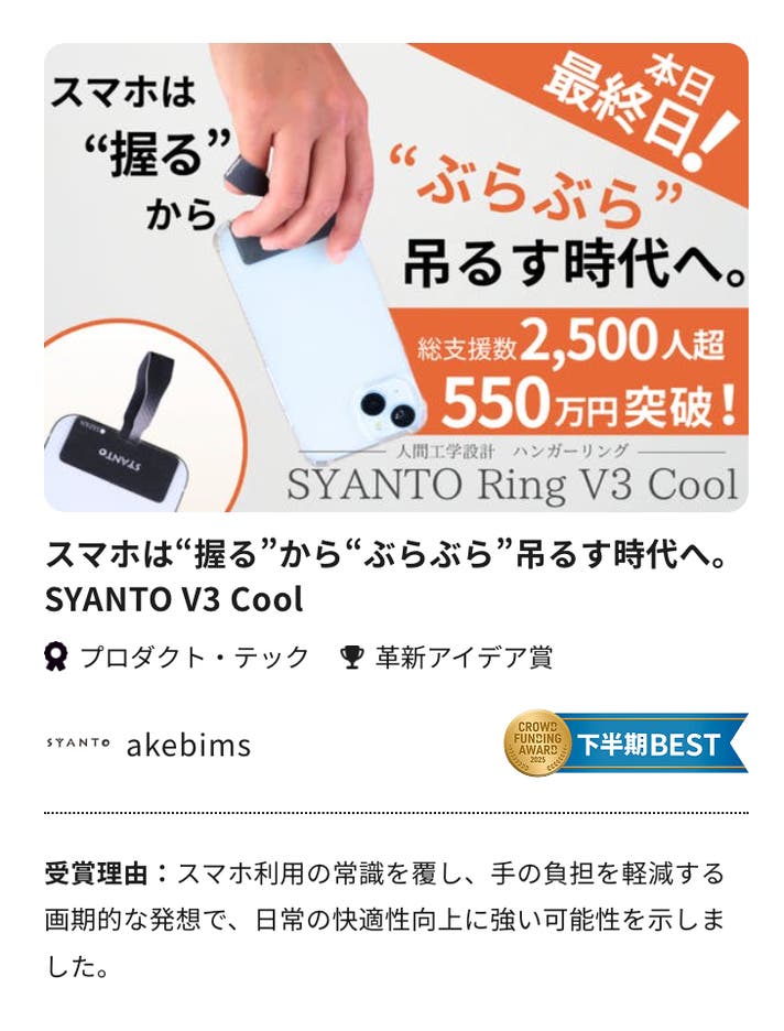 SYANTOの別プロダクトが2025年クラウドファンディングアワードにて「革新アイデア賞」を受賞し、一躍大注目されました!