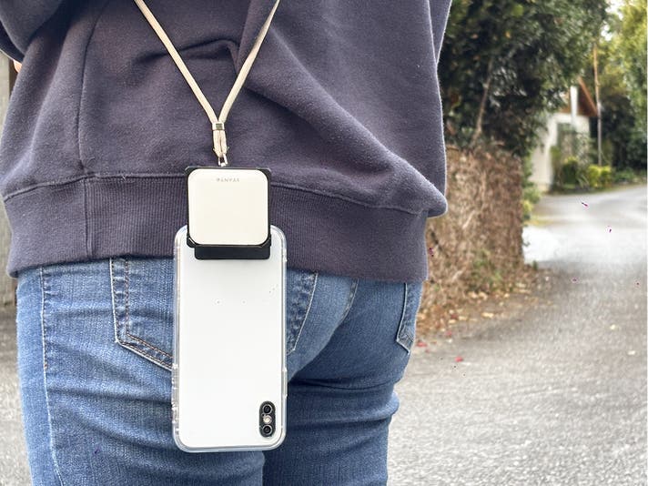 スマホを肩から掛けて持ち運び、両手を自由に使うことができます。