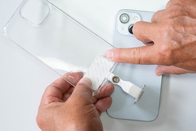 A. 取り付けはシートを丸めて充電口から挿入するだけでご利用いただけます。誰でも簡単に取り付け可能です。詳しくは下記を参考ください。