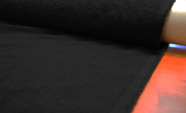 ▲左が縮絨前のスーツ地、右がそれを強縮絨させた今回の生地。