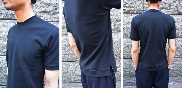 前肩補正、袖の前振り、など身体を動かすときに極力ストレスにならないようにパターンを設計しています。