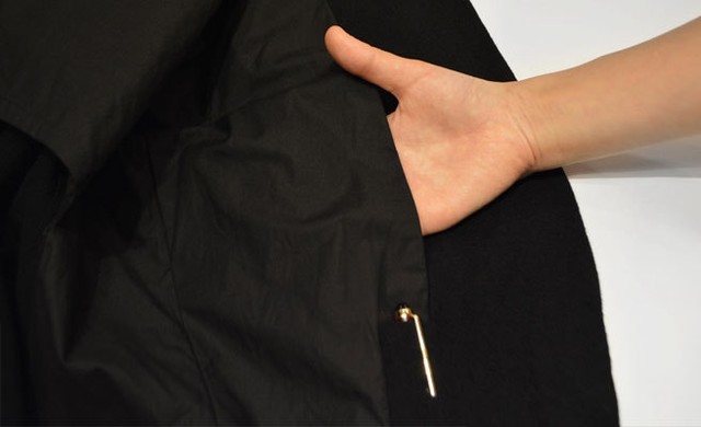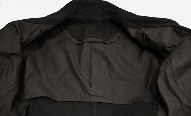 ※こちらが今回開発の強縮絨生地を使用したアイテムです。裏地に色は黒・ネイビー共にブラックになります。