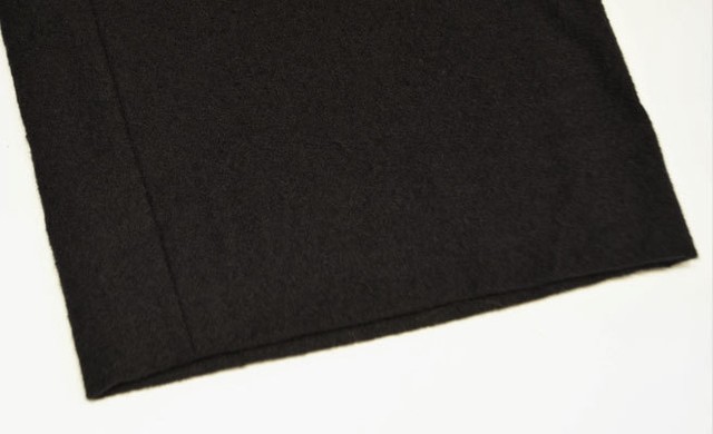 今回使用する強縮絨生地はかなり強めの縮絨をしている為、繊維が絡みこれ以上は縮みにくく、毛玉になりにくい状態になっています。
