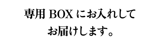 大切な方へ日頃の感謝と思いを込めた贈り物に、また日頃頑張っている自分へのご褒美に、専用BOXにお入れしてお届けいたします。