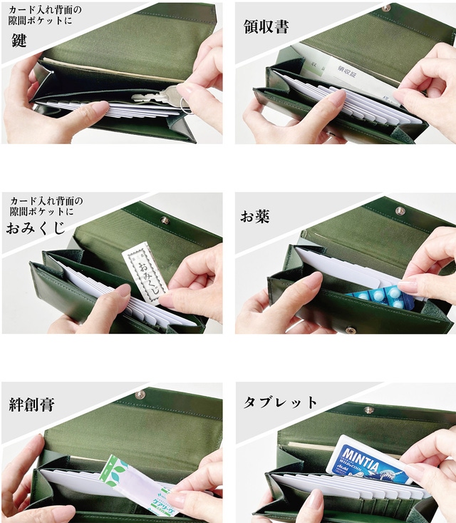 この余白をフリーポケットとしてお財布の使い方の発想を変えて、自由にちょっとした小物入れとしても活用していただけます。