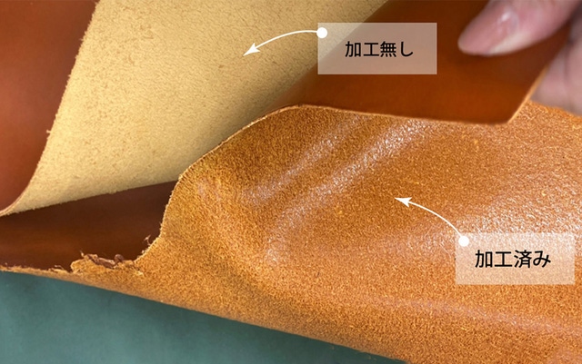 元々は2㎜の厚みのある革ですが、丈夫で締まった繊維の革に丁寧な鞣し(なめし)により仕上げておりますので、1㎜に漉いても、強度、耐久性が損なわれることはありません。