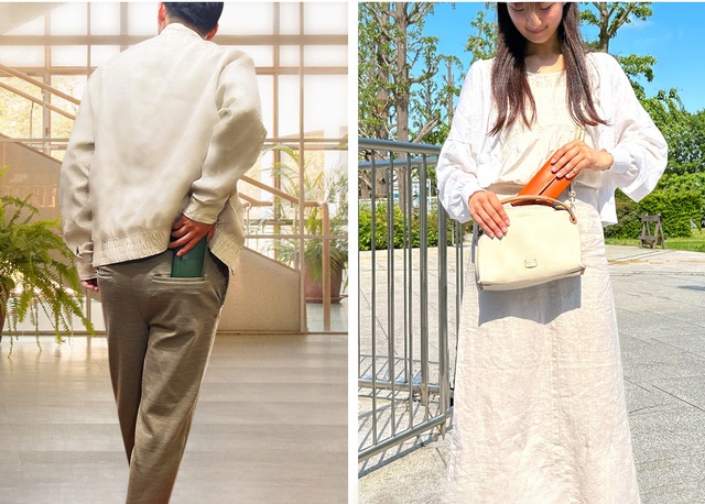 男性は、ズボンのポケットに、また、女性のミニバッグにもすんなりと入ってくれます。