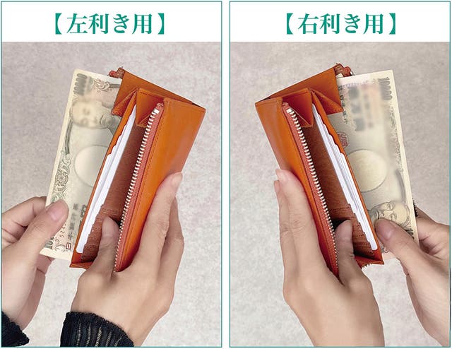 キャッシュでの支払いの時は、ファスナーをサッと開け、素早くもたつくことなくスマートにお支払いができます。