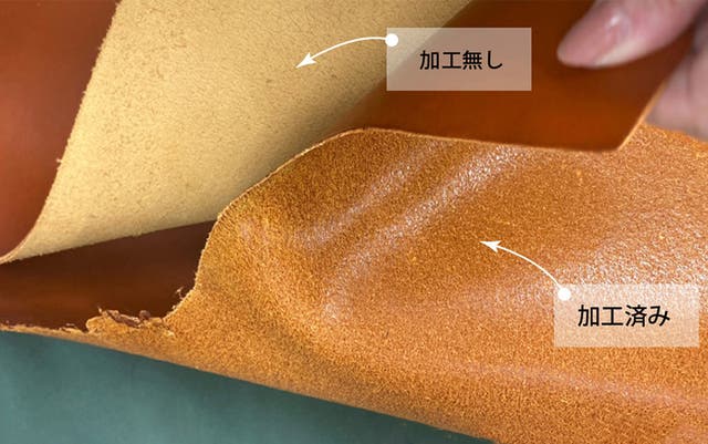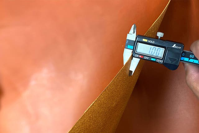 元々は2㎜の厚みのある革ですが、丈夫で締まった繊維の革に丁寧な鞣し(なめし)により仕上げておりますので、1㎜に漉いても、強度、耐久性が損なわれることはありません。