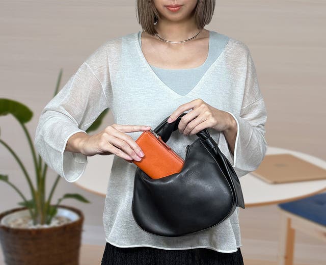 革を最適な厚さに漉(す)いて薄く仕上げ、革本来の張り感を大切するために芯材を使わないで縫製することで軽く仕上げることができました。
