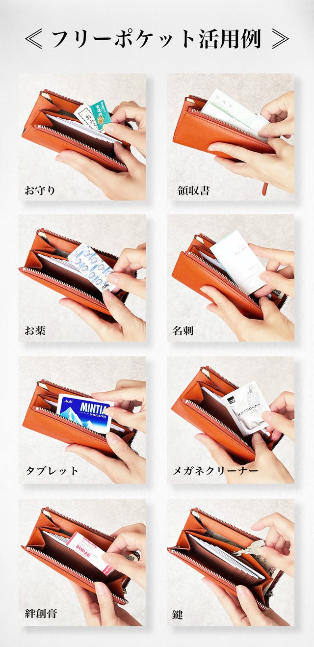 その余白を自由な発想でフリーポケットとすることでお財布の活用が広がります。