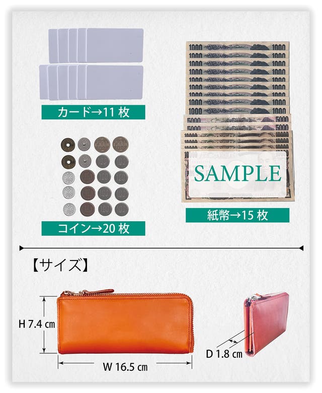 - 長財布ならではの快適を重視!お札、小銭、カード、全ての出し入れが素早くスムーズです。