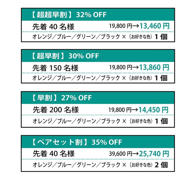 ・一般販売予定価格39,600円(2個)の35%OFF→25,740円 (消費税・送料込み)