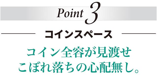 また、お札やカードの出し入れの時に傾けても小銭がこぼれ落ちる心配はありません。