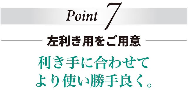 日本人の10%の方は左利きです。その少数派の左利きの方にも快適に使っていただける『左利き用』もご用意しました。