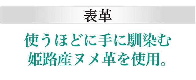 使用している革は皮革産業で盛んな姫路のタンナーより生産される、言わずと知れた『姫路レザー』。