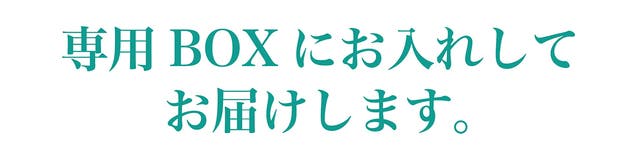大切な方へ日頃の感謝と思いを込めた贈り物に、また日頃頑張っている自分へのご褒美に、専用BOXにお入れしてお届けいたします。