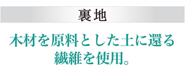 木材を原料とした繊維のレーヨンを使用しています。元々は、美しい絹に似せて作られたもののため、[人絹]と呼ばれています。また、FSC認証を受けた繊維です。