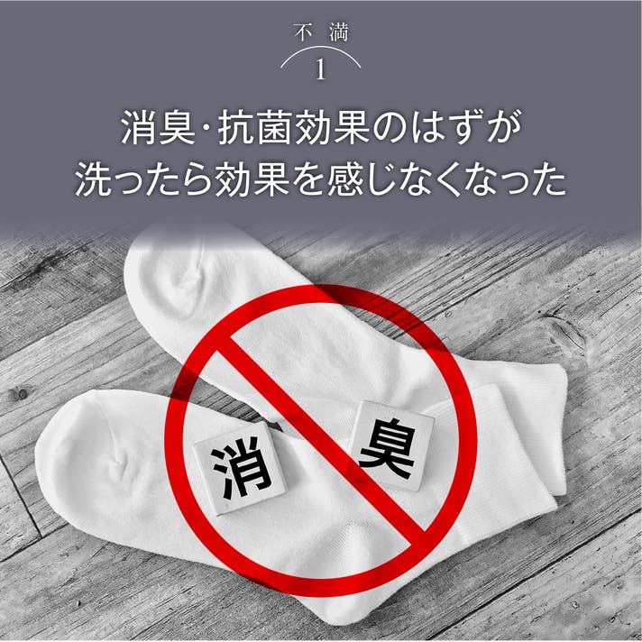 防腐剤や化学エッセンスを使用して消臭する靴下は洗濯すると抗菌・消臭効果がほとんどなくなってしまいます。
