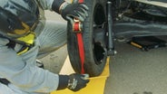 付属のラチェットでタイヤとスケーターを固定