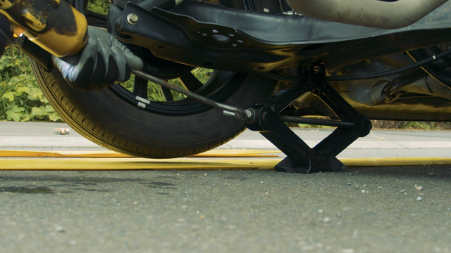 オプションのパンタジャッキを使って楽々装着準備