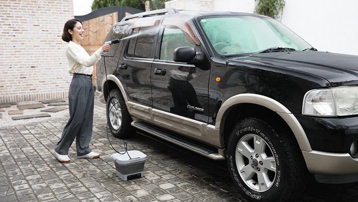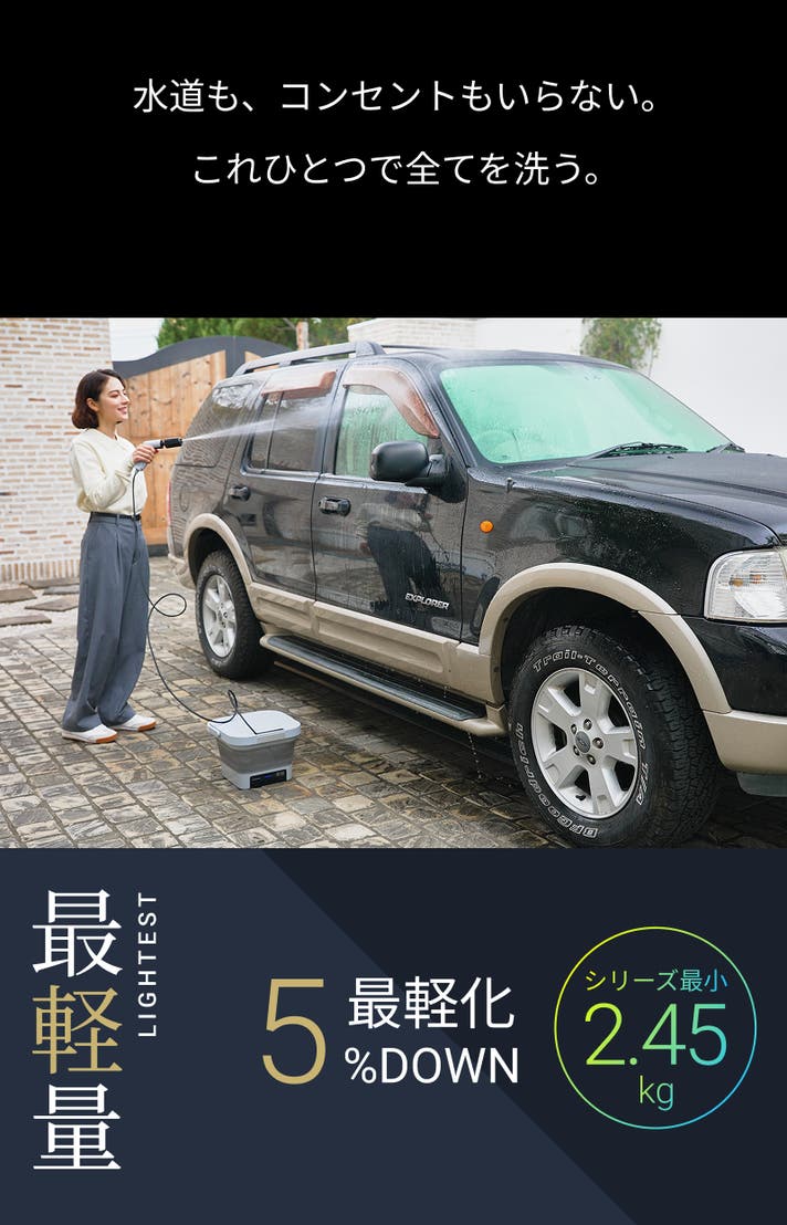 - 最薄最小最軽量※、出した瞬間すぐ使えるコードレス高圧洗浄機