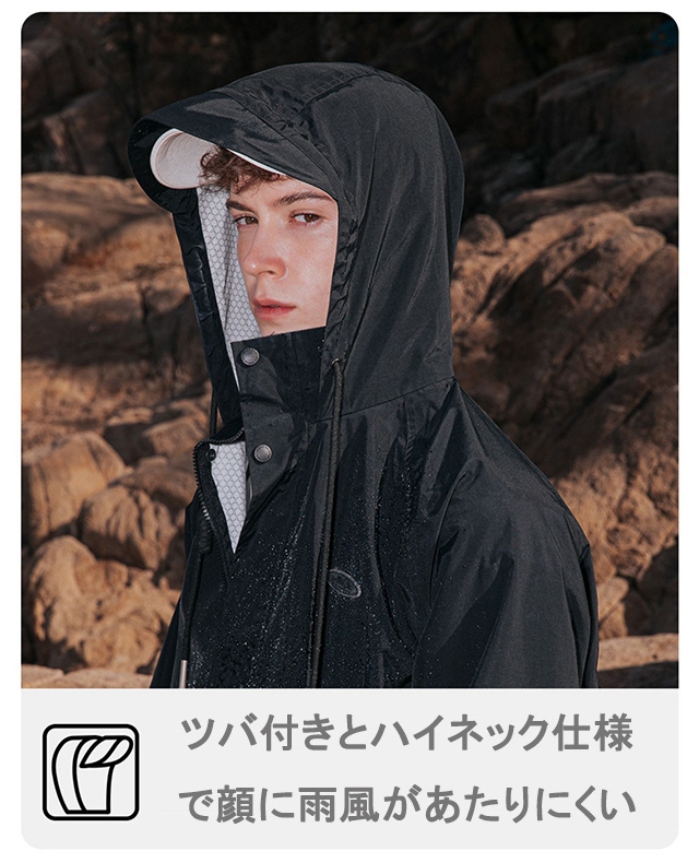 - ロング丈なので足元まで全身をすっぽり覆い、スクーターに乗る時も濡れにくい
