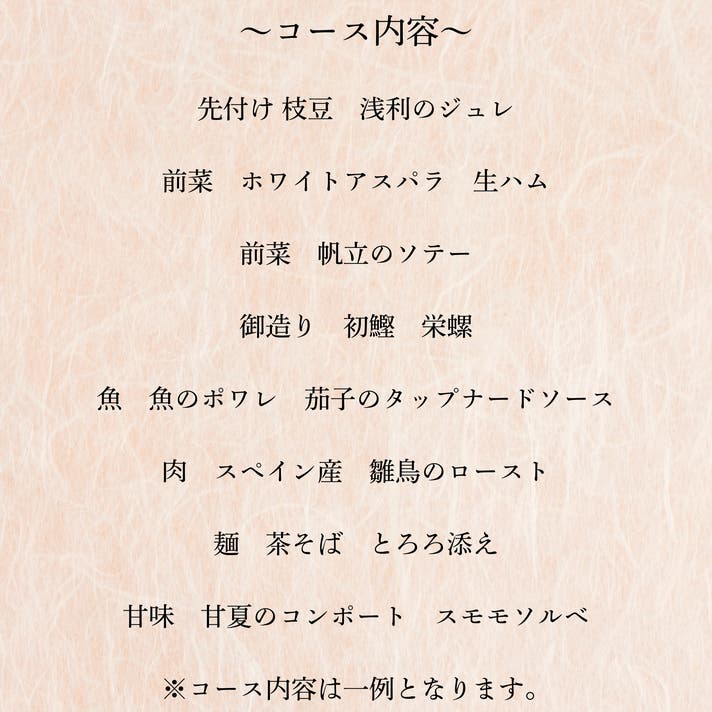 ※こちらのコースには、ドリンクは含まれておりません。