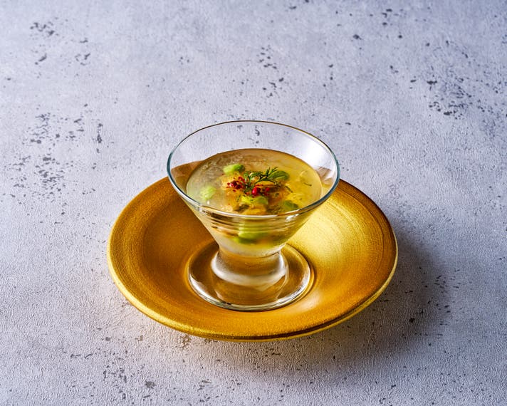 先付け 枝豆 浅利のジュレ