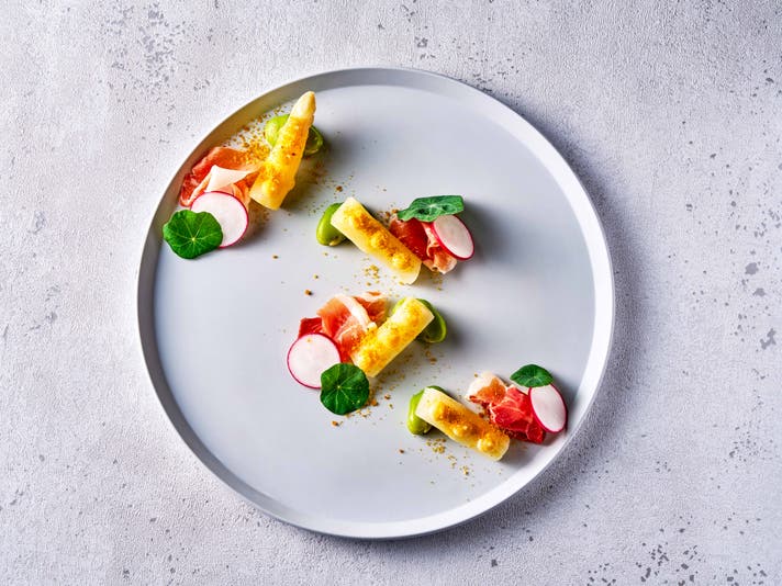 前菜 ホワイトアスパラ パルマ産生ハム