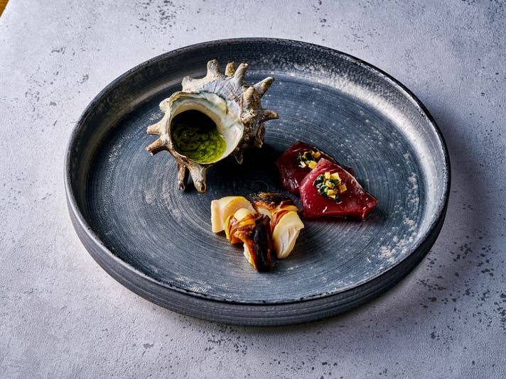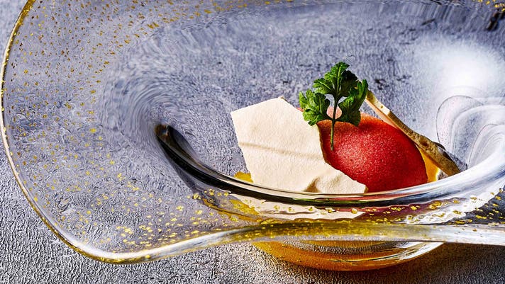 素材の味を引き出しつつ、斬新な見た目や口に含んだ時の味や香りで五感を擽る逸品をお届けいたします。和フレンチとお酒のマリアージュをご堪能ください。