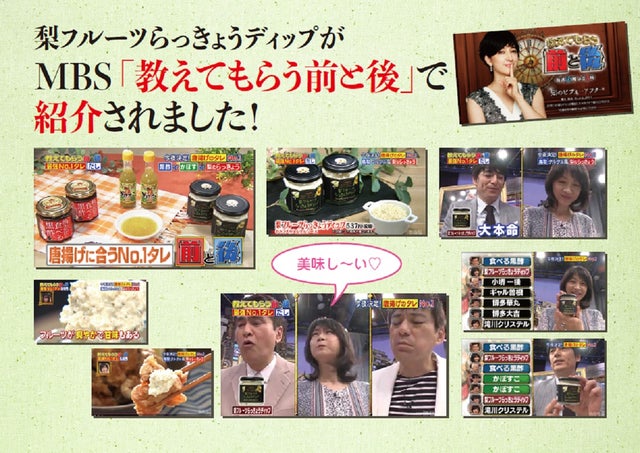 現在商品「梨&らっきょうドレッシング」、「梨フルーツらっきょうディップ」は、日本全国だけでなく国外でも販売されており、マスコミからの注目度も高く、テレビの全国放送にも多く取り上げられました。