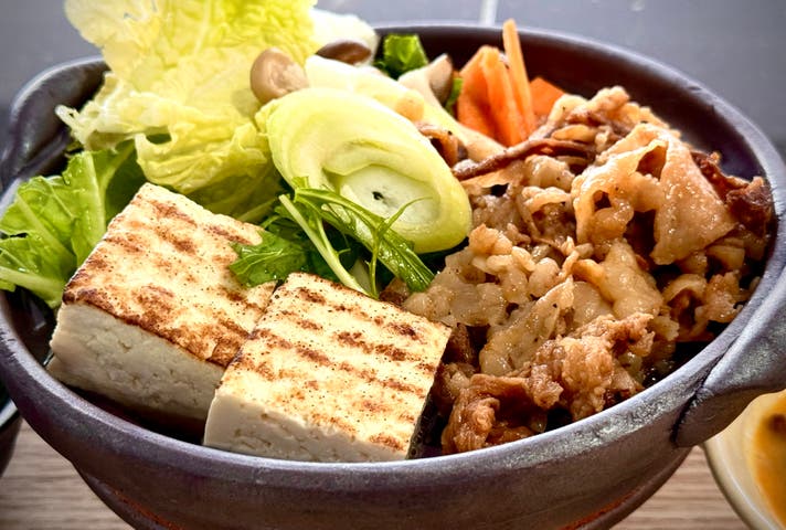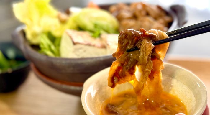 特徴としては、近江牛の上質な脂の甘味と肉の旨味が、昆布や鰹節を使った上品な和風出汁に溶け込み、深いコクが楽しめることです。シンプルな味付けながら、肉そのものの旨味が引き立つ仕上がりで、具材としてネギや豆腐、糸こんにゃくなどが添えるとより美味しいく召し上がって頂けます。