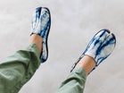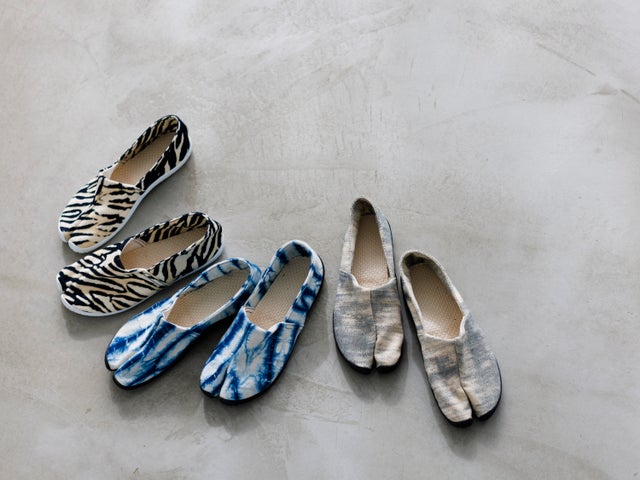 - 布を広げるまで染まり方が分からない「絞り染め」を使った3種の足袋シューズ。お好きな柄が選べる!